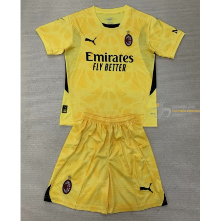 Camiseta y Pantalón Fútbol Niños AC Milan Portero Amarilla 2024-2025. MÁXIMA CALIDAD y MÁXIMA COMODIDAD. Se pueden añadir medias no oficiales a juego.