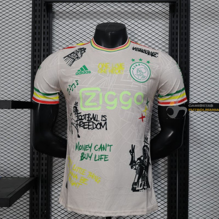 Camiseta Fútbol Ajax Edición Especial Bob Marley Blanca Z Versión Jugador 2025-2026. Se pueden adjuntar medias a juego, talla única adaptable. MÁXIMA CALIDAD y MÁXIMA COMODIDAD. Fíjate bien en la tabla de tallas adjunta en las fotos del producto.