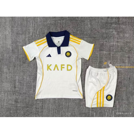 Camiseta y Pantalón Al-Nassr Niños Tercera Equipación 2025-2026. MÁXIMA CALIDAD y MÁXIMA COMODIDAD. Tejido 100% poliéster con ventilación estratégica que canaliza el aire alrededor del cuerpo y ayuda a los jugadores a mantenerse frescos. Ajuste clásico de camiseta de fútbol para la máxima comodidad dentro y fuera del terreno de juego. Diseño réplica para rendir homenaje a tu equipo.