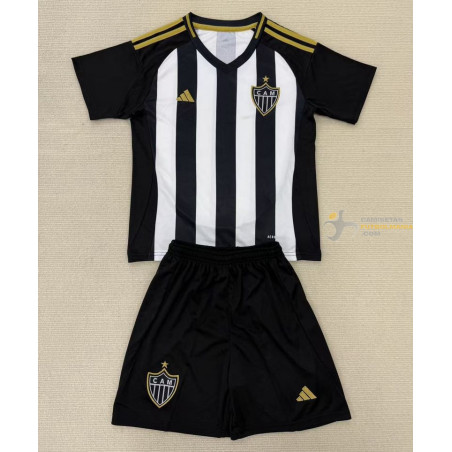 Camiseta y Pantalón Niños Atlético Minerio Primera Equipación 2025-2026. MÁXIMA CALIDAD y MÁXIMA COMODIDAD. Tejido 100% poliéster con ventilación estratégica que canaliza el aire alrededor del cuerpo y ayuda a los jugadores a mantenerse frescos. Ajuste clásico de camiseta de fútbol para la máxima comodidad dentro y fuera del terreno de juego. Diseño réplica para rendir homenaje a tu equipo.