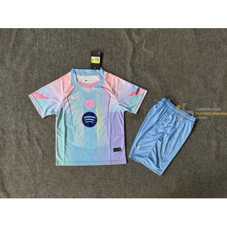 Camiseta y Pantalón Fútbol Niños Barcelona Edición Especial Azul 2025-2026. Se pueden adjuntar medias a juego no oficiales, talla única adaptable. MÁXIMA CALIDAD y MÁXIMA COMODIDAD.