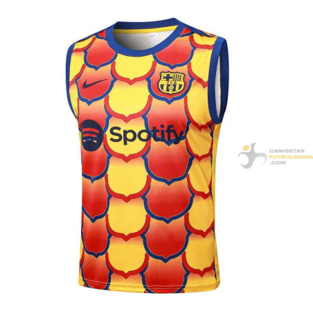 Camiseta Fútbol Sin Mangas Barcelona Entrenamiento Roja Amarilla 2024-2025