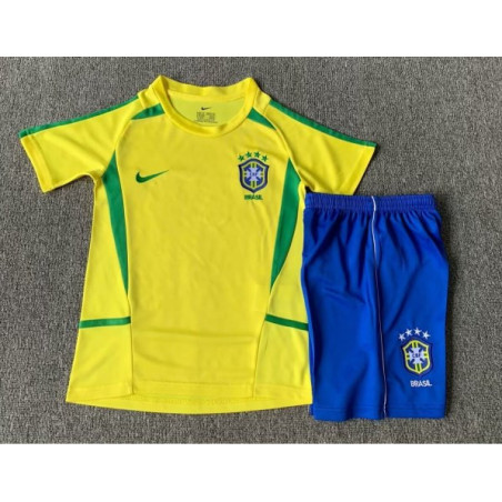 Camiseta y Pantalón Niños Brasil Primera Equipación Retro Clásica 2002