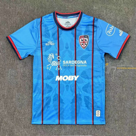 Camiseta Fútbol Cagliari Segunda Equipación 2025-2026. Se pueden adjuntar medias no oficiales a juego, talla única adaptable. MÁXIMA CALIDAD y MÁXIMA COMODIDAD. Fíjate bien en la tabla de tallas adjunta en las fotos del producto.