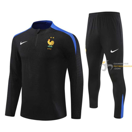 Chándal Francia Negro 2024-2025. MÁXIMA CALIDAD y MÁXIMA COMODIDAD. Tejido técnico de Alta Calidad con ajuste clásico de chándal para la máxima comodidad dentro y fuera del terreno de juego. Diseño réplica para rendir homenaje a tu equipo.