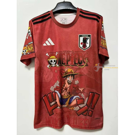 Camiseta Fútbol Japón One Piece Red 2025-2026. Se pueden adjuntar medias no oficiales a juego, talla única adaptable.. MÁXIMA CALIDAD y MÁXIMA COMODIDAD. Fíjate bien en la tabla de tallas adjunta en las fotos del producto.