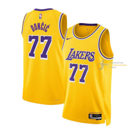 Camiseta NBA Luka Dončić 77 Los Angeles Lakers Amarilla 2024-2025. MÁXIMA CALIDAD y MÁXIMA COMODIDAD.