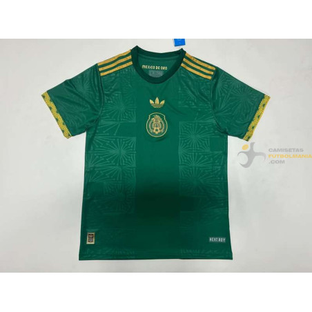 Camiseta Fútbol Mexico De Oro Edición Especial Verde 2025. Se pueden adjuntar medias no oficiales a juego, talla única adaptable.. MÁXIMA CALIDAD y MÁXIMA COMODIDAD. Fíjate bien en la tabla de tallas adjunta en las fotos del producto.