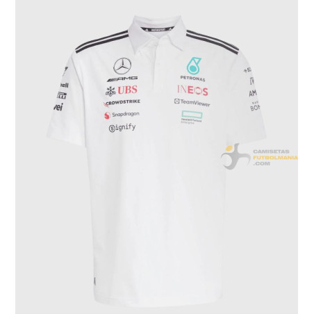 Polo F1 Mercedes Racing Team Blanca 2025. MÁXIMA CALIDAD y MÁXIMA COMODIDAD. Fíjate bien en la tabla de tallas adjunta en las fotos.