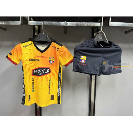 Camiseta y Pantalón Niños Barcelona Sporting Club Edición Centenario 1925-2025. MÁXIMA CALIDAD y MÁXIMA COMODIDAD. Tejido 100% poliéster con ventilación estratégica que canaliza el aire alrededor del cuerpo y ayuda a los jugadores a mantenerse frescos. Ajuste clásico de camiseta de fútbol para la máxima comodidad dentro y fuera del terreno de juego. Diseño réplica para rendir homenaje a tu equipo.
