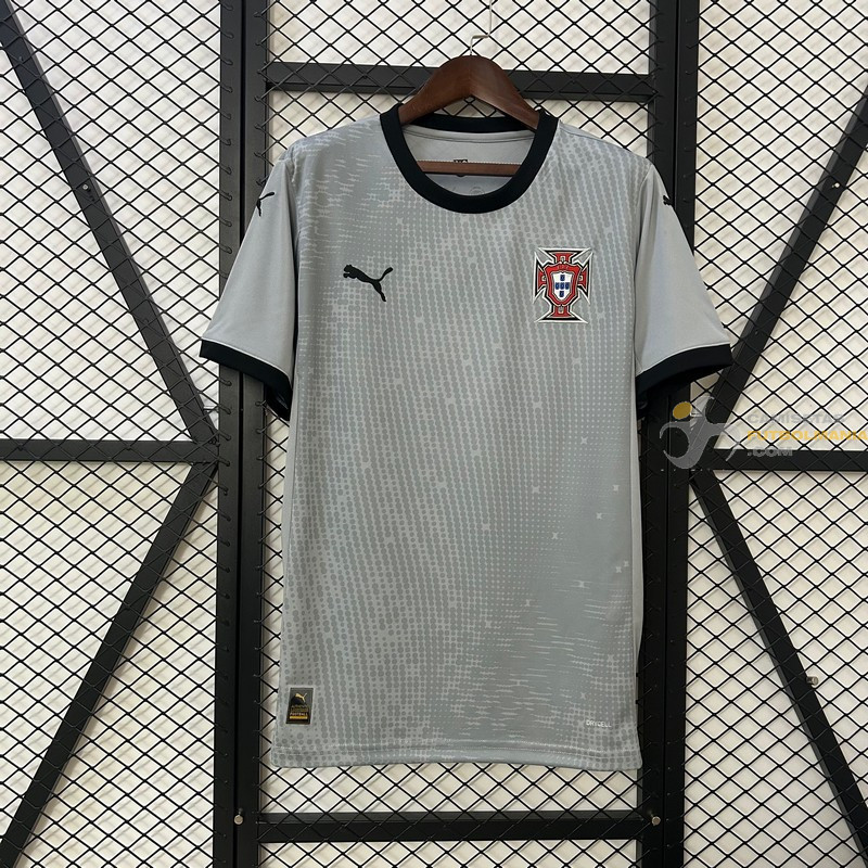 Camiseta Fútbol Portugal Portero Gris 2025-2026. Se pueden adjuntar medias no oficiales a juego, talla única adaptable.. MÁXIMA CALIDAD y MÁXIMA COMODIDAD. Fíjate bien en la tabla de tallas adjunta en las fotos del producto.