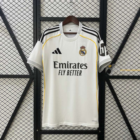Camiseta Fútbol Real Madrid Primera Equipación 2025-2026. Se pueden adjuntar medias oficiales a juego, talla única adaptable. MÁXIMA CALIDAD y MÁXIMA COMODIDAD. Fíjate bien en la tabla de tallas adjunta en las fotos del producto.