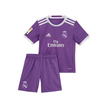Camiseta y Pantalón Niños Real Madrid Segunda Equipación Retro Clásica 2016-2017. MÁXIMA CALIDAD y MÁXIMA COMODIDAD. Tejido técnico reciclado que te ayuda a mantenerte seco y cómodo. Ajuste clásico de camiseta de fútbol para la máxima comodidad dentro y fuera del terreno de juego. Diseño réplica para rendir homenaje a tu equipo.
