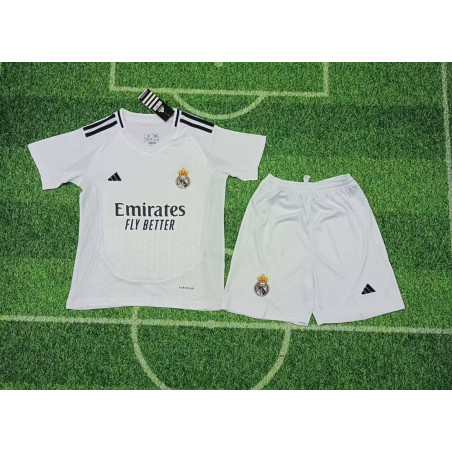 Camiseta y Pantalón Futbol Niños Real Madrid Primera Equipación 2024-2025. MÁXIMA CALIDAD y MÁXIMA COMODIDAD. Tejido técnico reciclado que te ayuda a mantenerte seco y cómodo. Ajuste clásico de camiseta de fútbol para la máxima comodidad dentro y fuera del terreno de juego. Diseño réplica para rendir homenaje a tu equipo.