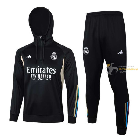 Chándal Capucha Real Madrid Negro 2024-2025. Máxima Calidad y Máxima Comodidad.