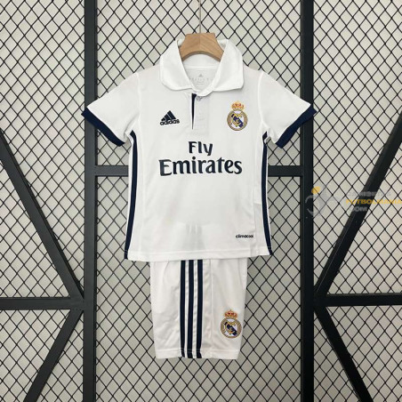 Camiseta y Pantalón Niños Real Madrid Primera Equipación Retro Clásica 2016-2017. MÁXIMA CALIDAD y MÁXIMA COMODIDAD. Tejido técnico reciclado que te ayuda a mantenerte seco y cómodo. Ajuste clásico de camiseta de fútbol para la máxima comodidad dentro y fuera del terreno de juego. Diseño réplica para rendir homenaje a tu equipo.
