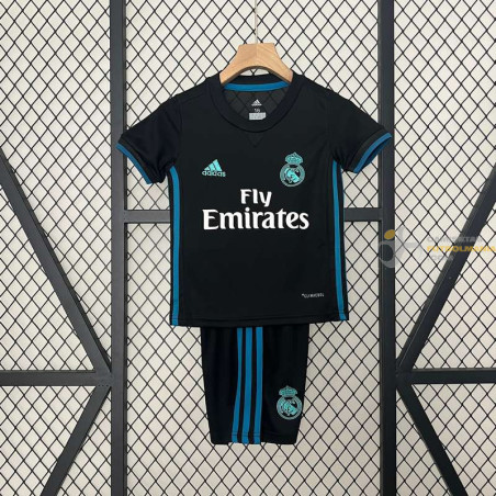 Camiseta y Pantalón Niños Real Madrid Segunda Equipación Retro Clásica 2017-2018. MÁXIMA CALIDAD y MÁXIMA COMODIDAD. Tejido técnico reciclado que te ayuda a mantenerte seco y cómodo. Ajuste clásico de camiseta de fútbol para la máxima comodidad dentro y fuera del terreno de juego. Diseño réplica para rendir homenaje a tu equipo.