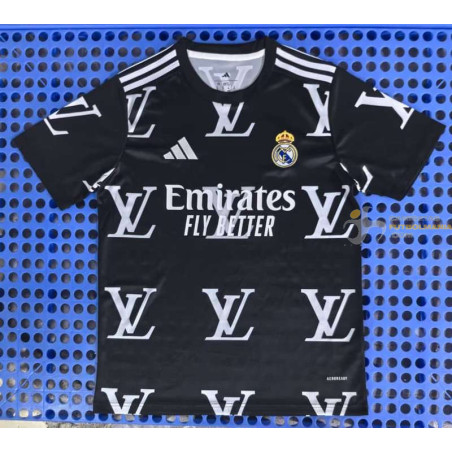 Camiseta Fútbol Real Madrid Edición Especial Louis Vuitton Concept Black 2024-2025. Se pueden adjuntar medias no oficiales a juego, talla única adaptable. MÁXIMA CALIDAD y MÁXIMA COMODIDAD. Fíjate bien en la tabla de tallas adjunta en las fotos del producto.