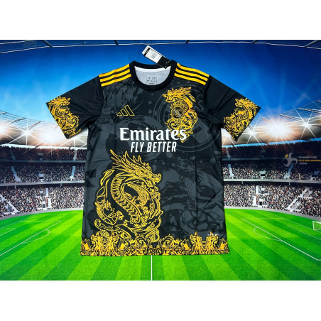 Camiseta Fútbol Real Madrid Edición Especial Dragón. Se pueden adjuntar medias no oficiales a juego, talla única adaptable. MÁXIMA CALIDAD y MÁXIMA COMODIDAD. Fíjate bien en la tabla de tallas adjunta en las fotos del producto.