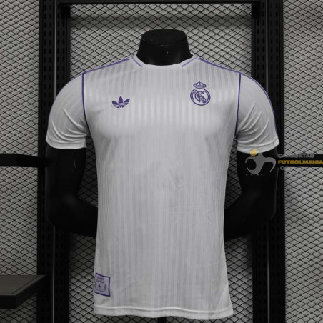 Camiseta Fútbol Real Madrid Edición Especial Blanca Vintage Versión Jugador 2025-2026. MÁXIMA CALIDAD y MÁXIMA COMODIDAD. Tejido técnico reciclado que te ayuda a mantenerte seco y cómodo. Ajuste clásico de camiseta de fútbol para la máxima comodidad dentro y fuera del terreno de juego. Diseño réplica para rendir homenaje a tu equipo.