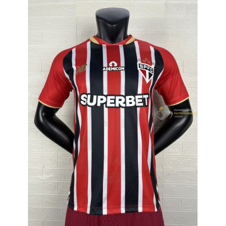 Camiseta Fútbol Sao Paulo Segunda Equipación Versión Jugador 2025-2026. Se pueden adjuntar medias no oficiales a juego, talla única adaptable. MÁXIMA CALIDAD y MÁXIMA COMODIDAD. Fíjate bien en la tabla de tallas adjunta en las fotos del producto.