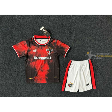 Camiseta y Pantalón Niños São Paulo Tercera Equipación 2024-2025. Se pueden adjuntar medias no oficiales a juego. MÁXIMA CALIDAD y MÁXIMA COMODIDAD. Fíjate bien en la tabla de tallas adjunta en las fotos del producto.