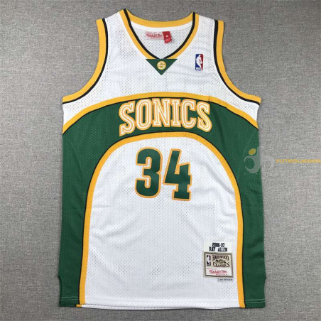 Camiseta NBA Seattle Supersonics Ray Allen 34 Retro Clásica Blanca 2006-2007. MÁXIMA CALIDAD y MÁXIMA COMODIDAD. CONSULTAR LA TABLA DE TALLAS