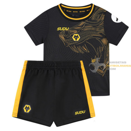 Camiseta y Pantalón Niños Wolverhampton Segunda Equipación 2024-2025. Se pueden adjuntar medias no oficiales a juego. MÁXIMA CALIDAD y MÁXIMA COMODIDAD.